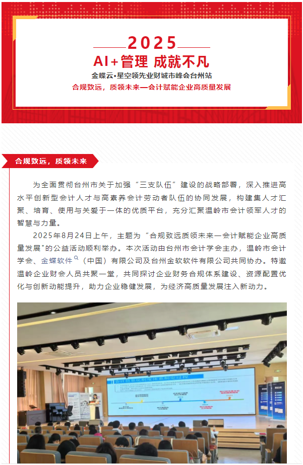 金軟 |AI+管理 成就不凡 金蝶云·星空領先業(yè)財城市峰會臺州站